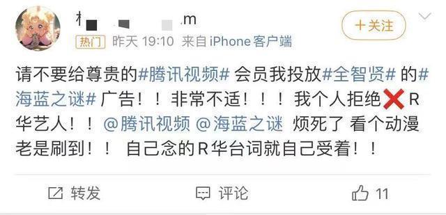 网友开始抵制平台投放的全智贤广告,表示不适合,她是R华艺人,看来大家真的在抵制全智贤。